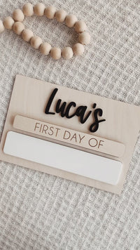 • Interchangeable magnetic "First Day Of" and "Last Day Of" wood pieces